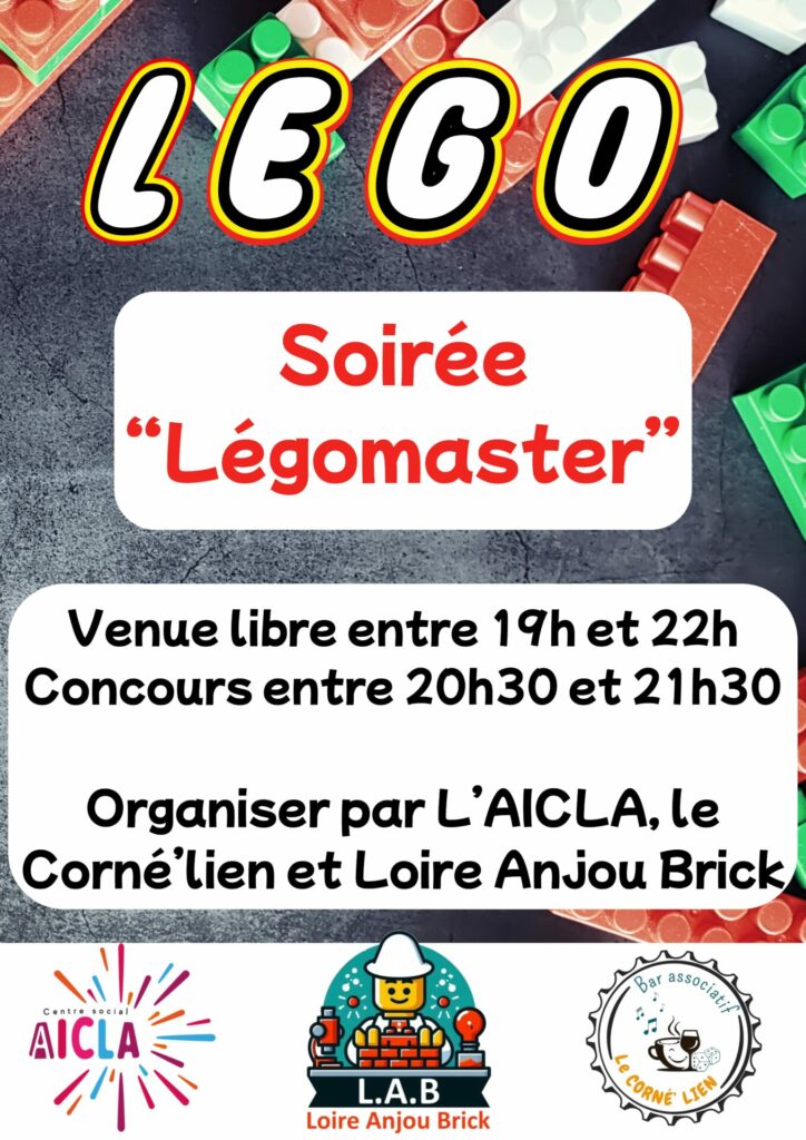 Le vendredi 06 février à la MJH de Corné (Salle Douro) entre 19h et 22h (venue libre), nous organisons une soirée Lego master en partenariat avec le Corné’lien et en co-animation avec Loire Anjou Brick.