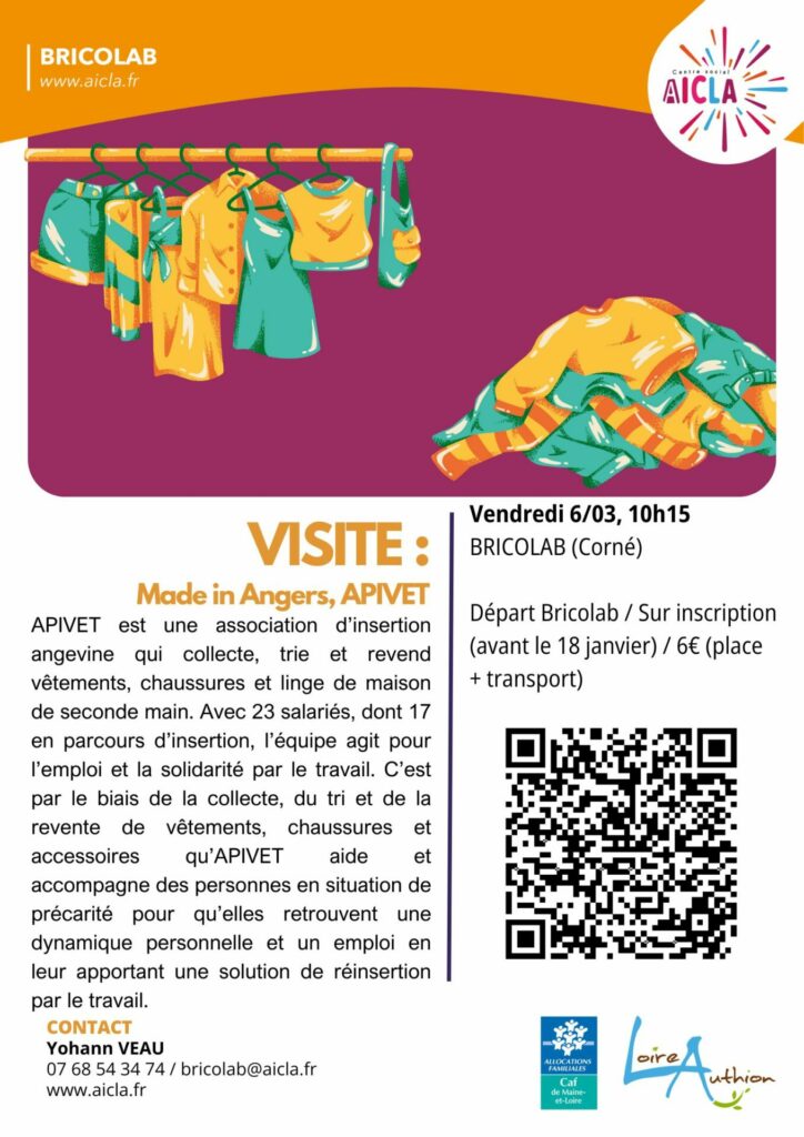 APIVET est une association d’insertion angevine qui collecte, trie et revend vêtements, chaussures et linge de maison de seconde main. Avec 23 salariés, dont 17 en parcours d’insertion, l’équipe agit pour l’emploi et la solidarité par le travail. C’est par le biais de la collecte, du tri et de la revente de vêtements, chaussures et accessoires qu’APIVET aide et accompagne des personnes en situation de précarité pour qu’elles retrouvent une dynamique personnelle et un emploi en leur apportant une solution de réinsertion par le travail.