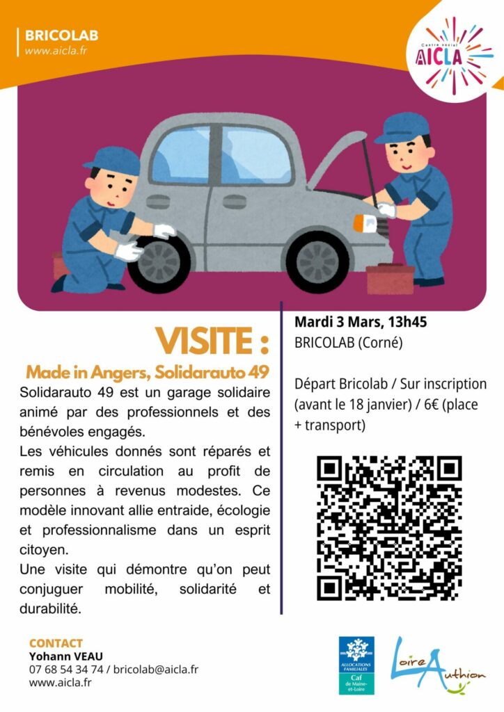 Départ Bricolab / Sur inscription https://www.helloasso.com/associations/aicla/evenements/brico-num-jardin-janv2026-mars2026 (avant le 18 janvier) / 6€ (place + transport)